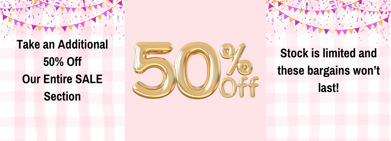 Enjoy an additional 50% off everything in our Sale section. That’s on top of already reduced prices! Hurry—limited stock and once it’s gone, it’s gone.