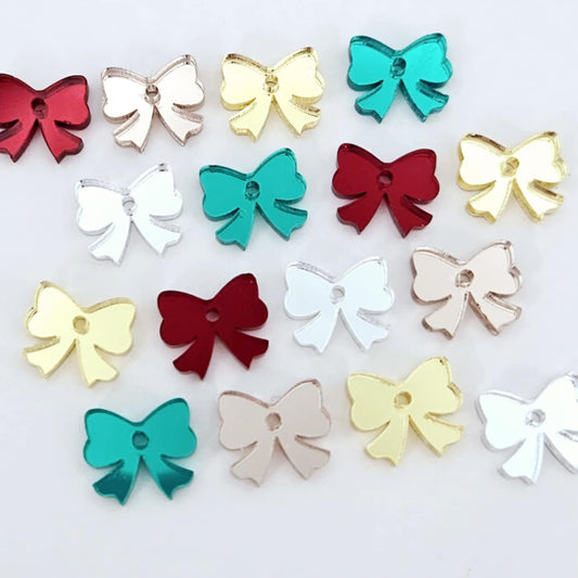 13mm CHRISTMAS MIRROR Acrylic BOWS with 1.5mm hole MIXED PACK