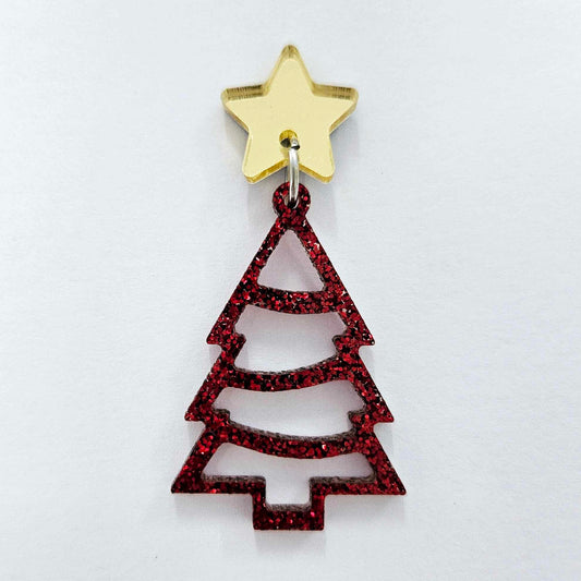 40mm RED GLITTER Acrylic CHRISTMAS TINSEL TREES
