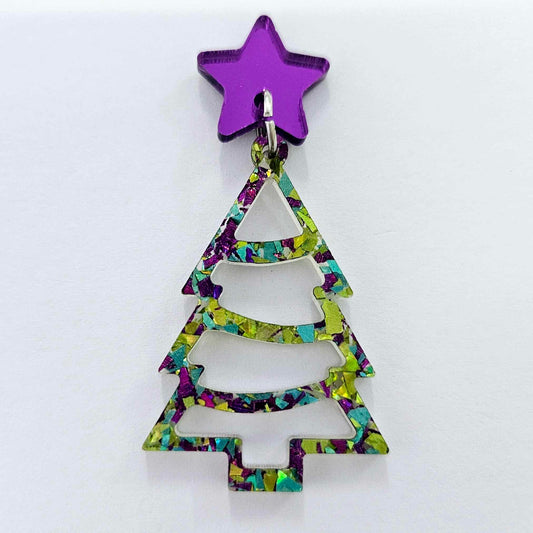 40mm PURPLE/BLUE/GOLD BUBBLE Glitter ZIGZAG Christmas Trees