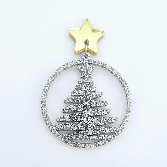 40mm SILVER GLITTER Acrylic CHRISTMAS TREE HOOPS