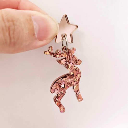45mm SILVER/GOLD/ROSE GOLD GLITTER Acrylic REINDEERS MIXED PACK