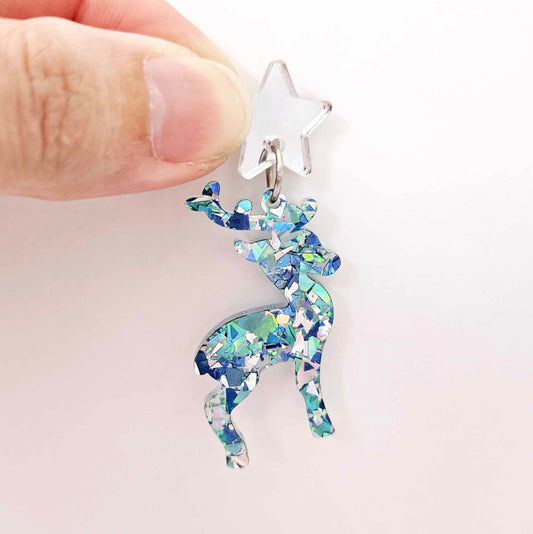 45mm AQUA GLITTER Acrylic REINDEERS