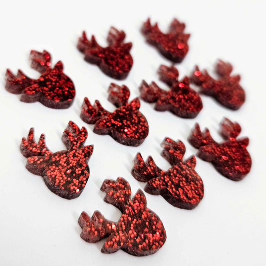 15mm RED GLITTER Acrylic REINDEERS