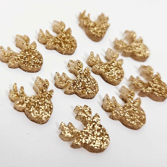 15mm GOLD GLITTER Acrylic REINDEERS