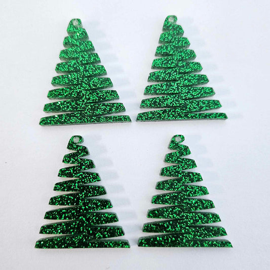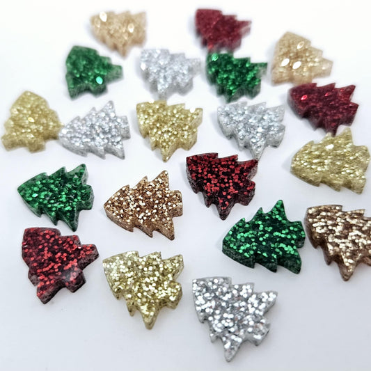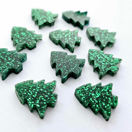 16mm GREEN GLITTER Acrylic CHRISTMAS TREES