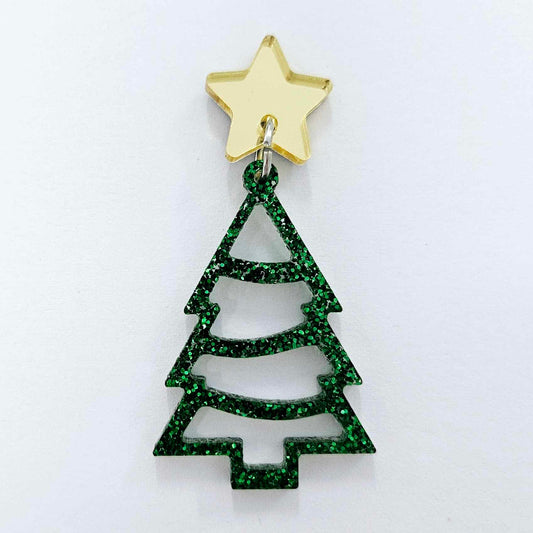 40mm GREEN GLITTER Acrylic CHRISTMAS TREE HOOPS