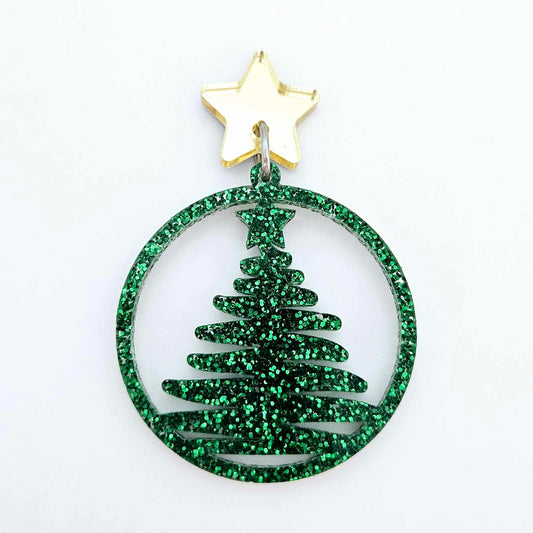 40mm GREEN GLITTER Acrylic CHRISTMAS TINSEL TREES