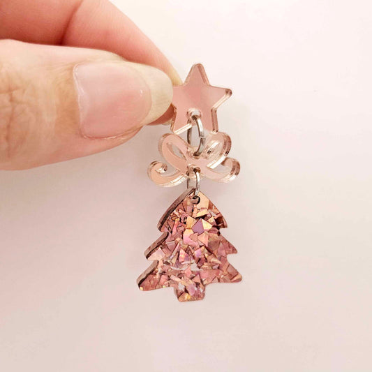 25mm HOLOGRAPHIC ROSE GOLD GLITTER Acrylic MINI CHRISTMAS TREES