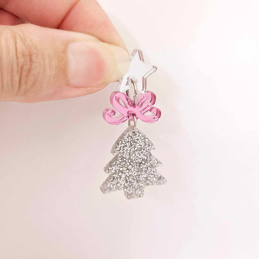 25mm SILVER GLITTER Acrylic MINI CHRISTMAS TREES