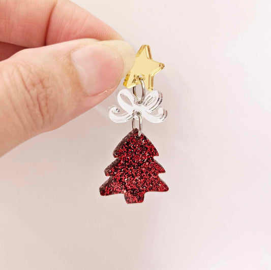 25mm RED GLITTER Acrylic MINI CHRISTMAS TREES