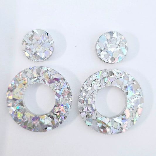 33mm HOLOGRAPHIC SILVER GLITTER Acrylic MINI HOOPS, with toppers