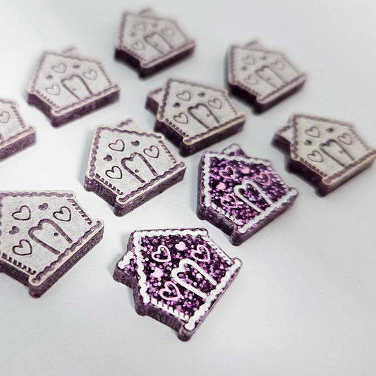16mm PURPLE GLITTER Acrylic GINGERBREAD HOUSES
