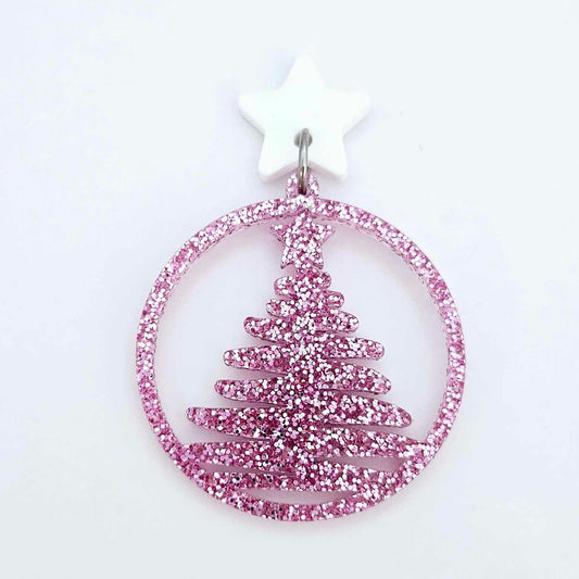 40mm PINK GLITTER Acrylic CHRISTMAS TREE HOOPS