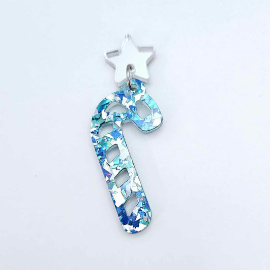 45mm CHUNKY AQUA GLITTER Acrylic CANDY CANES