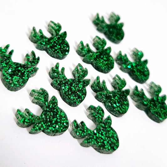 15mm GREEN GLITTER Acrylic REINDEERS