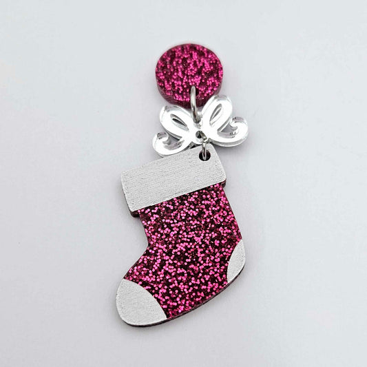 30mm HOT PINK GLITTER Acrylic STOCKINGS