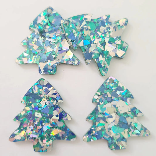 35mm AQUA GLITTER Acrylic CHRISTMAS TREES