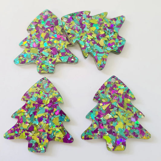 35mm CHUNKY PEACOCK GLITTER Acrylic CHRISTMAS TREES