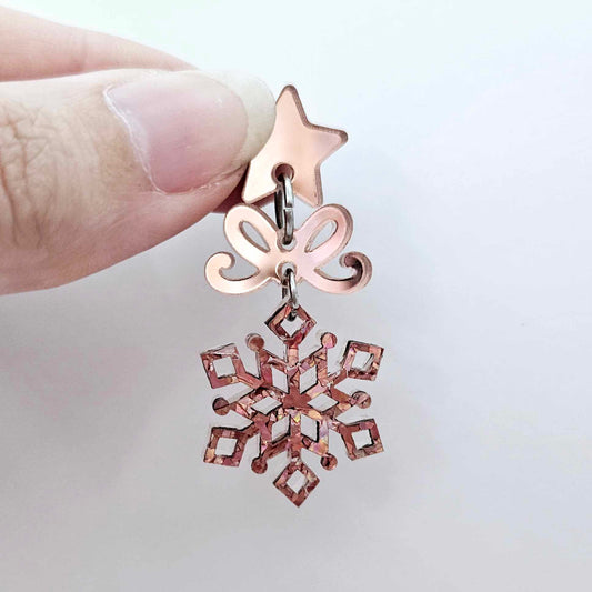 25mm HOLOGRAPHIC ROSE GOLD GLITTER Acrylic MINI SNOWFLAKES
