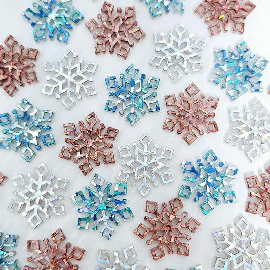 25mm HOLOGRAPHIC SILVER GLITTER Acrylic MINI SNOWFLAKES