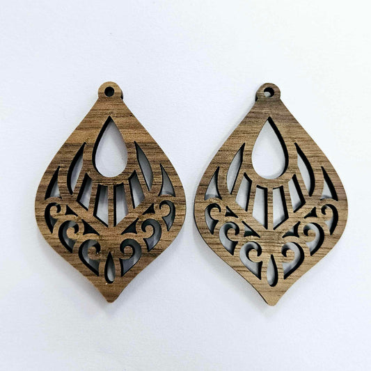 50mm WALNUT Veneer FILIGREE TEARDROPS