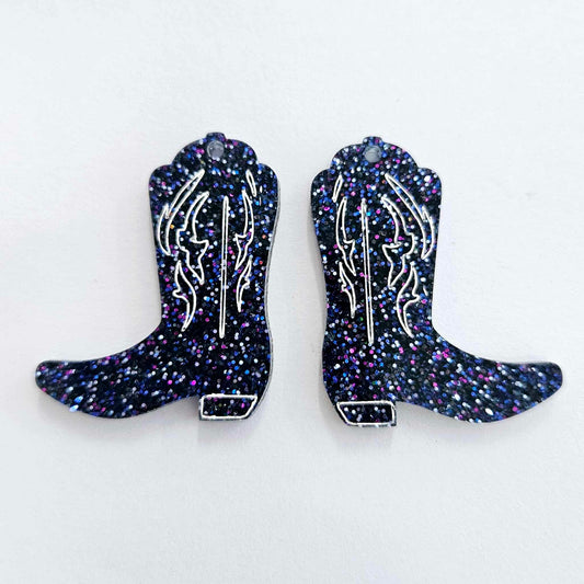 35mm HOLOGRAPHIC BLUE GLITTER Acrylic BOOTS