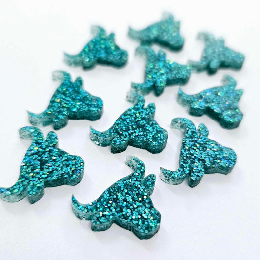 17mm TEAL GLITTER Acrylic BULL HEADS