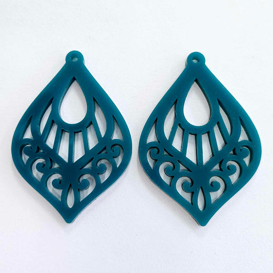 50mm TURQUOISE Acrylic FILIGREE TEARDROPS