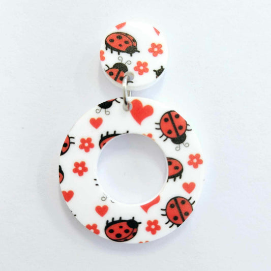 33mm LADYBUG LOVE Acrylic MINI HOOPS, with toppers