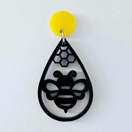 45mm GLOSSY BLACK Acrylic BEE TEARDROPS
