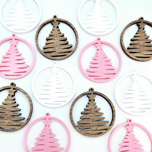 40mm WALNUT/PINK/WHITE Acrylic CHRISTMAS TREE HOOPS MIXED Pack