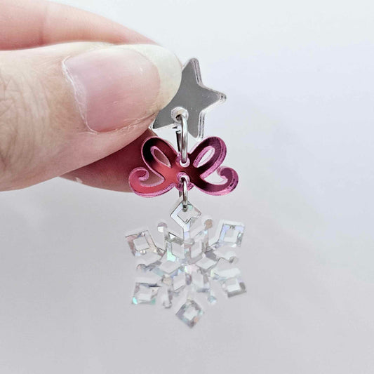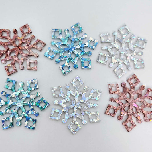 25mm HOLOGRAPHIC SILVER GLITTER Acrylic MINI SNOWFLAKES