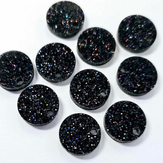 14mm HOLOGRAPHIC BLACK GLITTER Acrylic Toppers/Studs