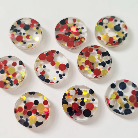 14mm RED, BLACK & GOLD BUBBLE GLITTER Acrylic Toppers/Studs