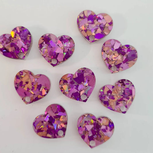14mm PURPLE & GREEN PEACOCK GLITTER Acrylic HEART Toppers/Studs