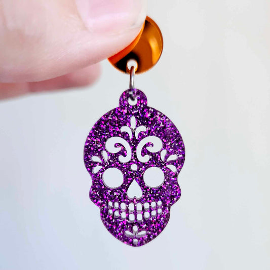 38mm HOLOGRAPHIC PURPLE GLITTER Acrylic SKULLS