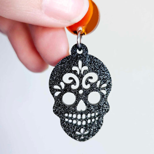 38mm BLACK GLITTER Acrylic SKULLS