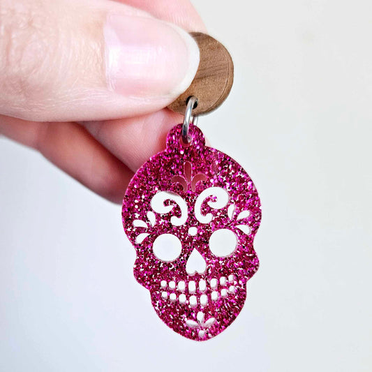 38mm HOT PINK GLITTER Acrylic SKULLS