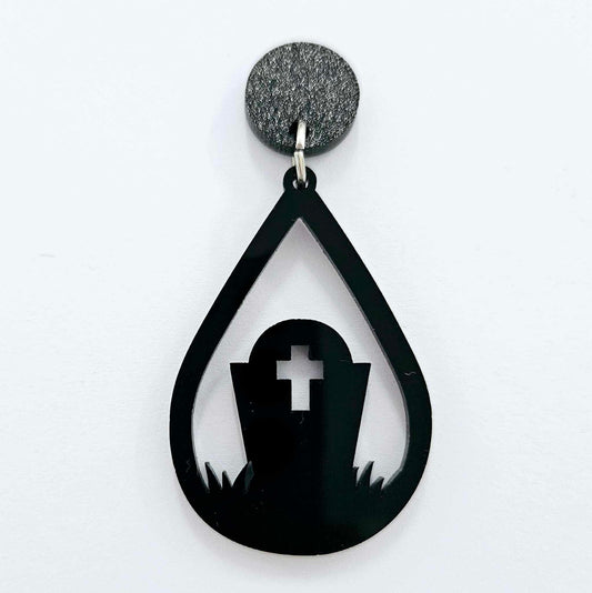 45mm GLOSSY BLACK Acrylic GRAVE TEARDROPS
