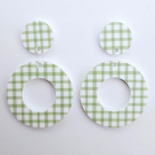33mm GREEN GINGHAM Acrylic MINI HOOPS, with toppers