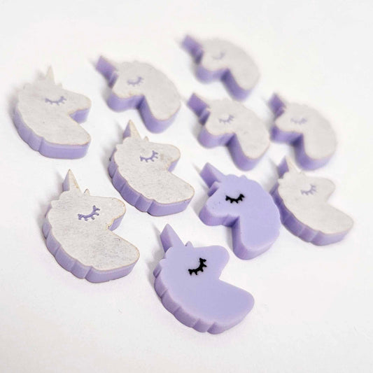 15mm PASTEL PURPLE Acrylic UNICORNS with Eyelashes