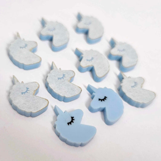 15mm PASTEL BLUE Acrylic UNICORNS with Eyelashes