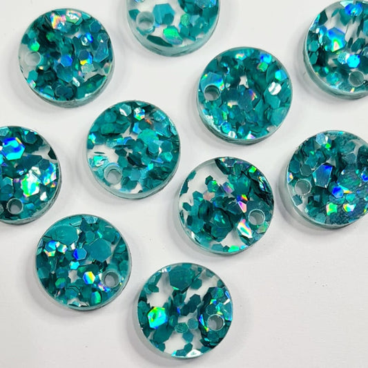 14mm CHUNKY PEACOCK GLITTER Acrylic Toppers/Studs