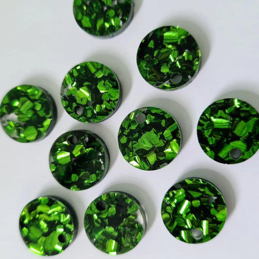 14mm CHUNKY GREEN GLITTER Acrylic Toppers/Studs