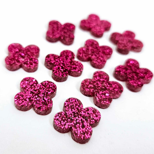 15mm HOT PINK GLITTER Acrylic CLOVER/QUATREFOIL