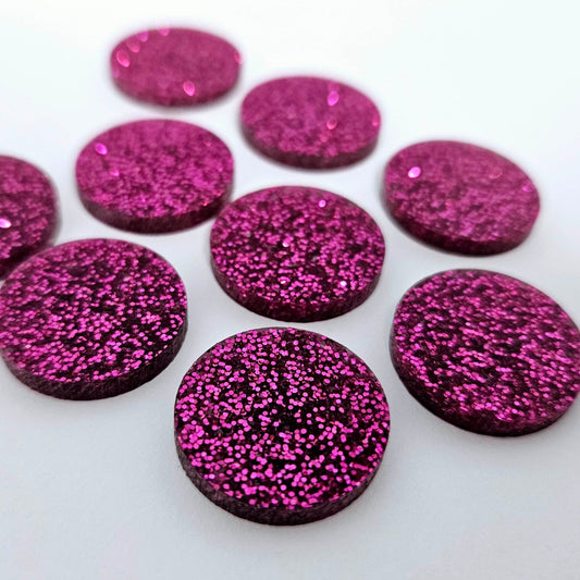 20mm HOT PINK GLITTER Acrylic CIRCLES