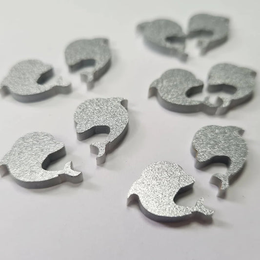 15mm GREY SILVER GLITER Acrylic DOLPHINS
