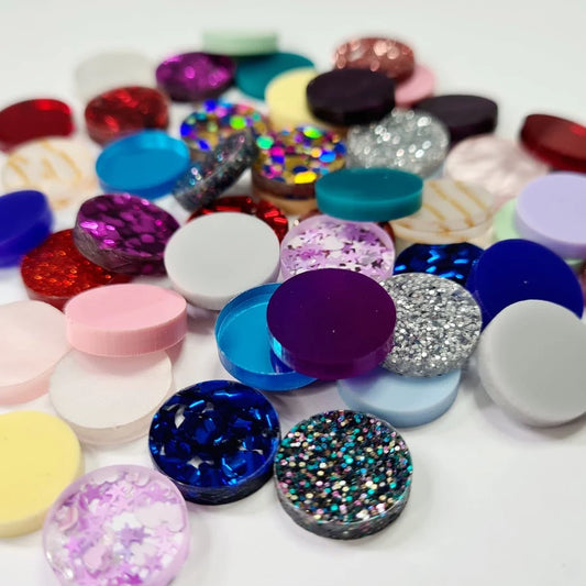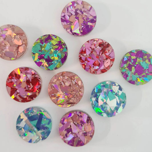 14mm FINE GLITTER Acrylic CIRCLE MIXED PACK