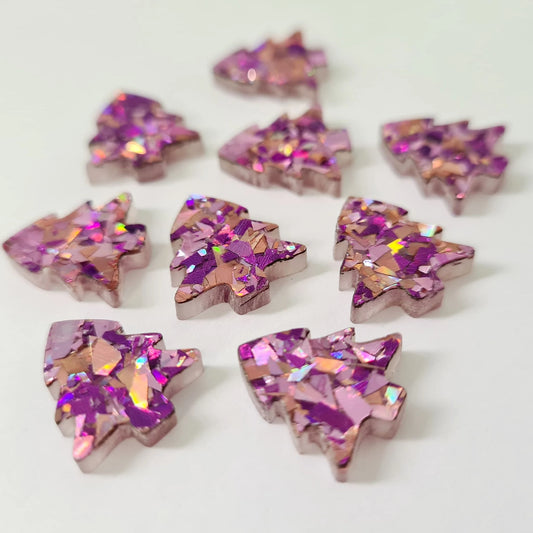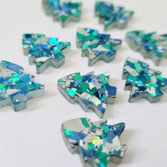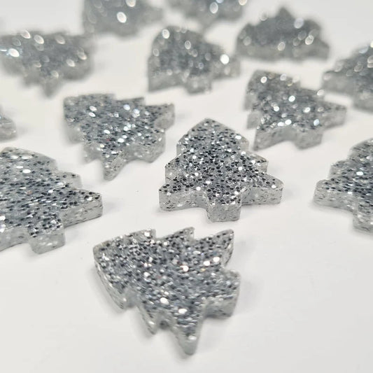 16mm SILVER GLITTER Acrylic CHRISTMAS TREES